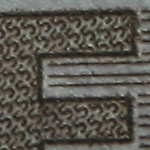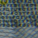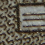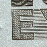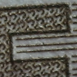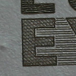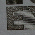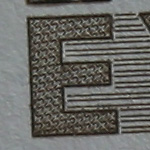 Alle Testbilder wurden in Photoshop unscharf maskiert (120%, Radius 0,8, Schwellenwert 6), da dies meine übliche Vorgehensweise bei Makroaufnahmen ist. Die Testbilder wurden als jpg in Stufe 10 komprimiert, dabei sollten sich die Artefakte in Grenzen halten bei noch akzeptablen Dateigrößen. Die gezeigten Bilder sind 100% Ausschnitte aus dem "E", sie stimmen nicht immer überein, da ich mir stets den schärfsten Bereich ausgesucht habe. Bei Bedarf habe ich auch noch Ausschnitte aus Randbereichen hinzugefügt.