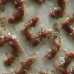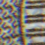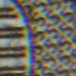 Sony F717 @ 48mm + Canon 50/1,8 in Retrostellung - Blende 4 - 1/8s Bildbreite 1 cm Abstand Frontlinse zu Motiv ca. 3,5 cm Am Bildrand sehr starker Abfall der Bildqualität und starke Vignettierung. |