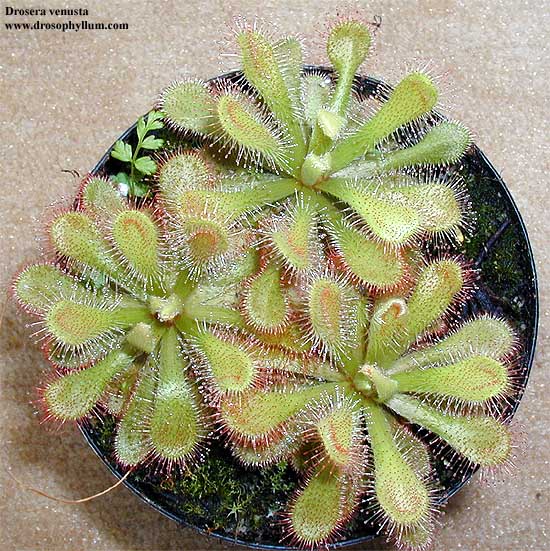 | Licht : | Hell und sonnig. Färben sich die Blätter oder Tentakel rötlich und bleibt die Pflanze gedrungen, dann ists hell genug. |