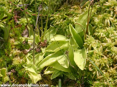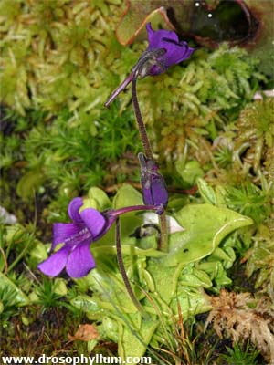 Der letzte Vertreter unter meinen Karnivorenarten im Moorbeet ist das Fettkraut Pinguicula grandiflora, das ebenfalls voll winterhart ist und mittlerweile zahlreiche von Moos frei geblieben Stellen im Moorbeet besiedelt hat. Es bildet im Winter eine Überwinterungsknospe und vermehrt sich über Kindel. Die blauen Blüten bilden einen schönen Kontrast zu den anderen Pflanzen. Einheimische Fettkräuter wie z.B. Pinguicula vulgaris halte ich nicht. Genauso habe ich bisher auf die Kultur von einheimischen Utricularia Arten verzichtet. Das liegt primär daran, dass ich noch keine auf den üblichen Tauschbörsen zum Verkauf gesehen haben. Dafür