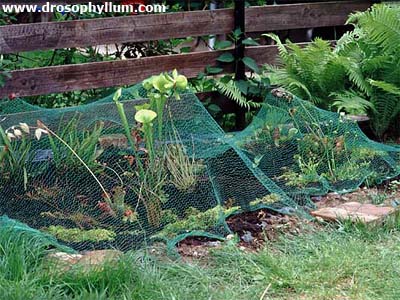 Karnivoren setzt man am besten im Frühjahr ein, nachdem die letzten Fröste definitiv vorbei sind. In meiner Gegend ist das ca. Mitte Mai. Dann können sich die Pflanzen eine komplette Wachstumsperiode lang an das Freilandklima gewöhnen, bis der erste Winter kommt. Wer im Sommer bepflanzen will, sollte sich eine Zeit mit kühlem und regnerischem Wetter aussuchen. Auch der Herbst eignet sich noch bis ca. September zum Bepflanzen. Beim ersten Bepflanzen empfiehlt sich ein Vogelschutznetz, da sonst die Vögel oft die meist noch recht einzeln stehenden Exemplare herausreißen, wenn sie im frischen Torf wühlen. Sobald die Brutsaison vorbei ist oder die Pflanzen angewachsen sind sollte man das Netz entfernen. Ansonsten wachsen die Pflanzen hindurch und beim Abnehmen hat man dann die Wahl, die Pflanzen oder das Netz zu beschädigen. Vögel waren bei mir eigentlich nur bei der Neuanlage ein größeres Problem. Man kann sich da aber im ersten Jahr der Bepflanzung mit einem Vogelschutznetz ganz gut behelfen. Im Laufe der Zeit und wenn das Moorbeet einmal bewachsen ist sind die Vögel dann kein gravierendes Problem mehr. Sie picken zwar auch bei mir mal Sarracenienschläuche auf um an die Insekten zu gelangen oder wüten im Moos, aber der Schaden hält sich meist in Grenzen. Man kann das Moos ja wieder andrücken, wo nötig und wenn gelegentlich mal ein Sonnentau verloren geht kann man eigentlich ganz gut damit leben. Am aktivsten sind die Vögel während der Zeit des Nistbaus. Zumindest gegen die Amseln reicht es meiner Erfahrung nach auch aus, das Netz um das Moor herum zu legen, die Vögel betreten das Moorbeet dann normalerweise nicht. Nach dem Lesen vieler Erfahrungsberichte hatte ich mir das Problem deutlich schlimmer vorgestellt. Vielleicht hatte ich bisher auch nur Glück... ___ |