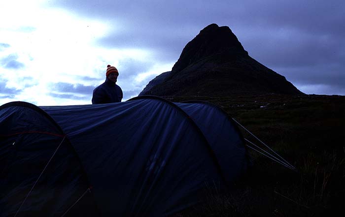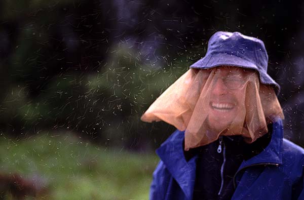 Hansi war der einzige mit nem Mosquitonetz, ich war der Meinung "so an Bledsinn schlepp i ned mit mia rum". Hias ist sowieso derjenige, der zwar ne superschwere Jeans "zum fuatgeh" einpackt, aber dann, um Gewicht zu sparen so ziemlich alle anderen wichtigen Sachen zuhause läßt. Und Tim hatte sich "für alle Fälle" ein Fliegengitter vom Fenster daheim mitgenommen. Lächerlich ! Man siehts wie es geholfen hat ;o) Das Lachen ist übrigens eher ein Ausdruck völliger Resignation denn von Freude. Ich habe noch 3 Bilder gemacht, auf denen er wild um sich schlägt, aber da sieht man die midges nicht so schön ;o) (jeder Strich eine midge) Die Bilder habe ich übrigens sprichwörtlich mit meinem Blut bezahlt. Ich hoffe doch sehr, der Leser weiß dies zu schätzen. |