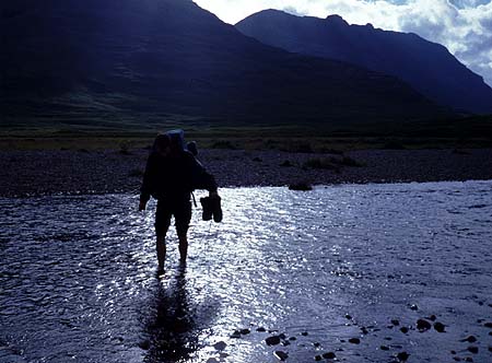 Am Ende der Wanderung gönnten wir uns dann ein gemütliches Lagerfeuer mitten im Fluß. Wer hatte eigentlich die dumme Idee, daß es da weniger Mosquitos geben könnte ? Dafür blieb das Bier schön kühl und unsere Gesangseinlagen wurden stimmungsvoll vom Plätschern des Wassers untermalt. |