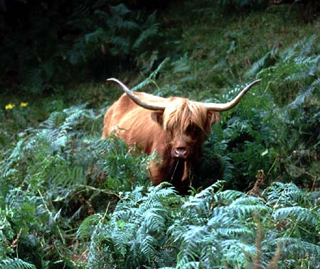Immer näher pirschte sich der unerschrockene Fotograph an dieses wilde, gefährliche Biest heran, um dann, dem Tod ins Auge blickend, eiskalt den Auslöser zu drücken. Gratulationen bitte an meine eMail (und an mein Teleobjektiv ;o) ) Die Rindviecher kamen übrigens nicht in Glen Afric vor, sondern weiter südlich. Das Foto hab ich versehentlich mit eingescannt und irgendwo muß es ja hin. |