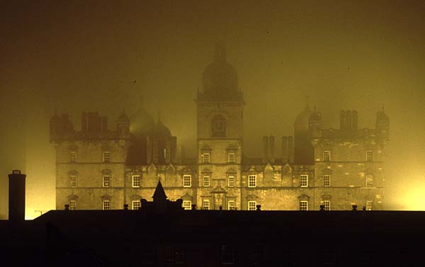| Schlußendlich siegte dann doch der Wunsch nach Kultur (und nach heißen Duschen und daß man das Zelt aufmachen kann, ohne gleich völlig zerstochen zu werden) und so besichtigten wir noch einige interessante Schlösser im Süden Schottlands sowie das (selbstverständlich verregnete) Festival in Edinburgh. Hier mal ein Schloß... |