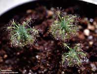 | Licht : | Hell und sonnig. Färben sich die Blätter oder Tentakel rötlich und bleibt die Pflanze gedrungen, dann ists hell genug. |